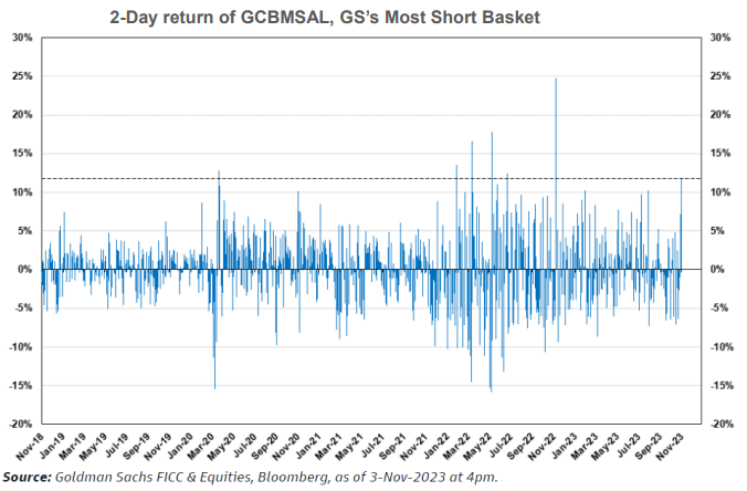 As markets started to rally, those short stocks were getting their faces ripped off. Over the last few weeks, the S&P 500 rose over 5% while the Goldman Sachs basket of the most shorted stocks rose 10%, ranking in the 99th percentile over the last five years (this was a Four Sigma move). Unprofitable tech stocks rallied, meaning money was in buy-the-dip mode, and shorts got beaten up.
